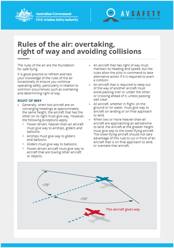 Our handy card provides information for pilots on the rules when sharing airspace in Australia.