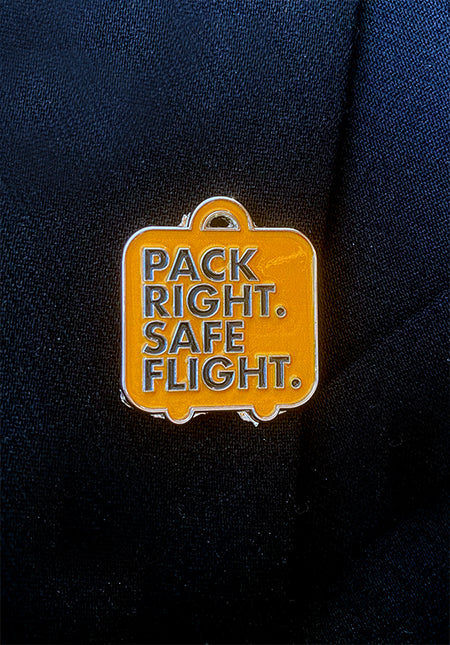 This small but striking lapel pin features the ‘Pack Right. Safe Flight.’ dangerous goods message.