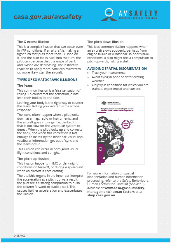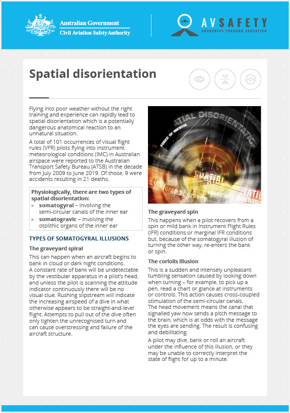Our handy card provides information for pilots on the physiological effects that can lead to loss of control when pilots lose visual cues in flight.