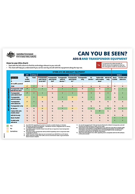 The front features a guide to help operators determine if the ADS-B technology used in their aircraft can be seen by other aircraft and air traffic control.